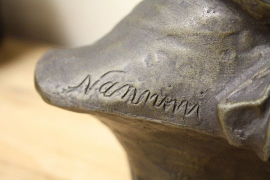 A FRENCH 'FABRICATION FRANCAISE' CAST METAL BUST OF MOZART, H 29 CM