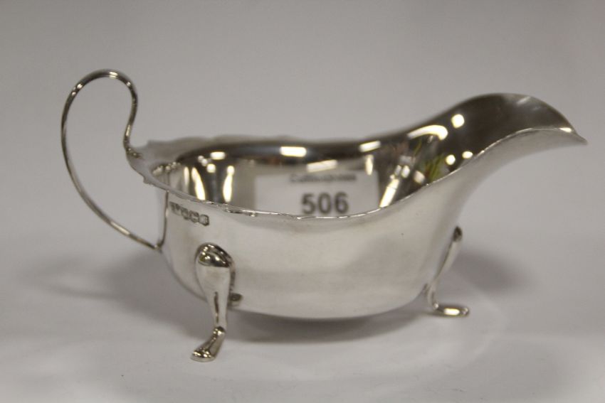 A HALLMARKED SILVER SAUCE BOAT
