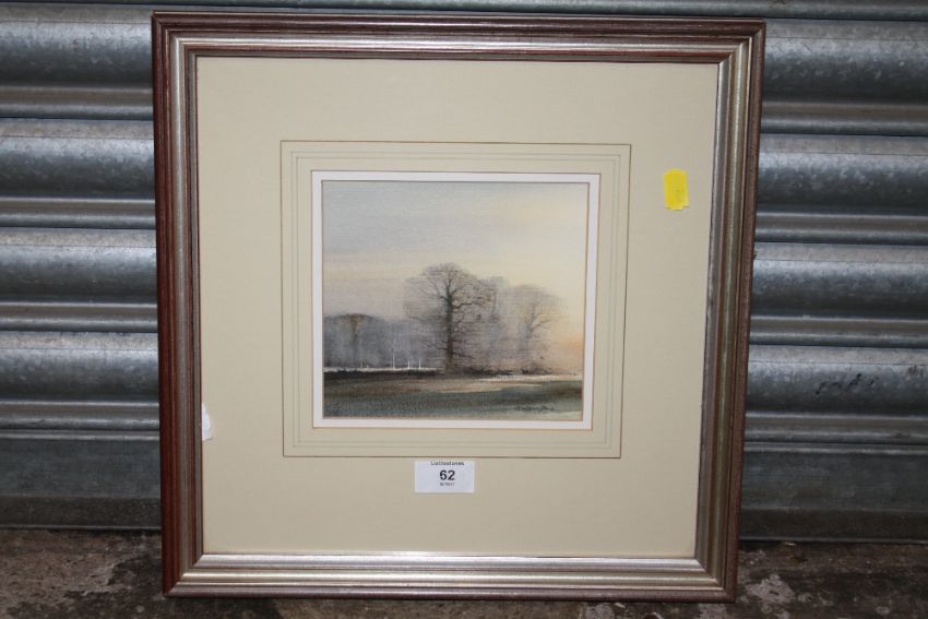 A SMALL FRAMED AND GLAZED WATERCOLOUR ENTITLED 'EVENING AT MARTON' BY GORDON DALE - SIZE - 15CM X 17CM