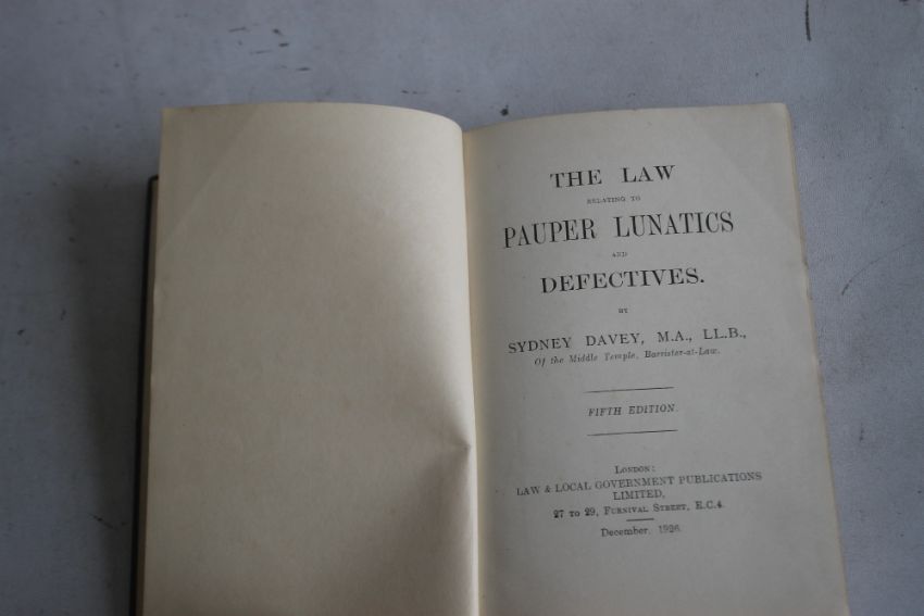 A SMALL COLLECTION OF EARLY 20TH CENTURY BOOKS ON LAW, to include Sydney Davey - 'The Law relating to Pauper Lunatics and Defectives, fifth edition 1926, John & Samuel Wormald - 'A Guide to the Mental Deficiency Act 1913', 'Glen's Poor Law Act 1930', George J. Roberts - 'A Practical Guide to Poor Law Prosecutions', Sydney Davey - 'Maintenance & Desertion' 7th ed. 1928, together with booklets relating to law and 'The Survey Gazeteer of the British Isles' published by John Bartholomew & Co. (14)