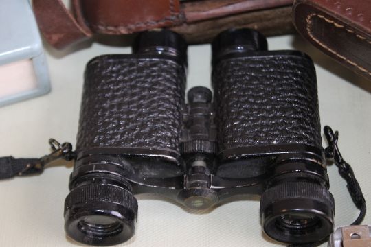 AN ENSIGN SELFIX 12-20 FOLDING CAMERA, along with Ilford Sportsman camera and various accessories etc. together with a set of Fournier binoculars