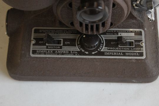 A SIMPLEX AMPRO LTD. IMPERIAL MODEL FILM PROJECTOR, in original fitted carry case, not tested