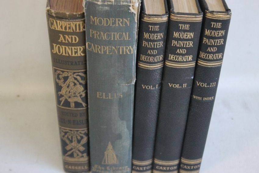 PAUL N. HASLUCK (ED.) - 'CARPENTRY & JOINERY Comprising notes on materials, processes, principles and practice, including about 1,800 engravings and twelve plates', published by Cassell & Company 1912 together with George Ellis - 'Modern Practical Carpentry For The Use of Workmen, Builders, Architects and Engineers', 2nd edition, The Library Press Limited 1924 and three volume set 'The Modern Painter and Decorator' 1948 (5)