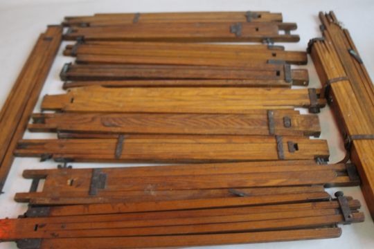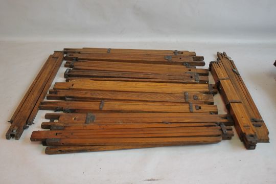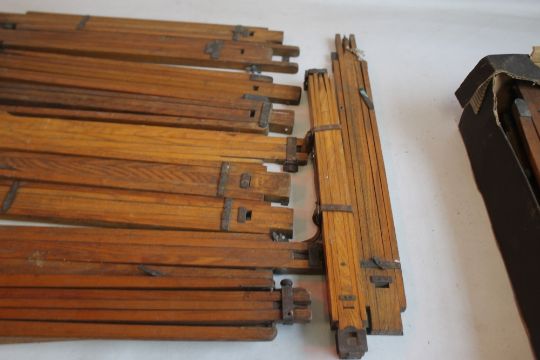 A TRAY OF VINTAGE OAK TRIPODS, approx. twenty five to include Ensign examples A/F