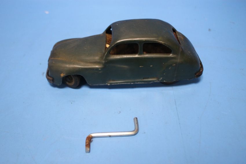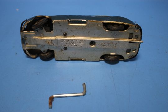 A 1950S CHAD VALLEY WIND UP WONDER CAR with key together with a vintage tin plate coach and train