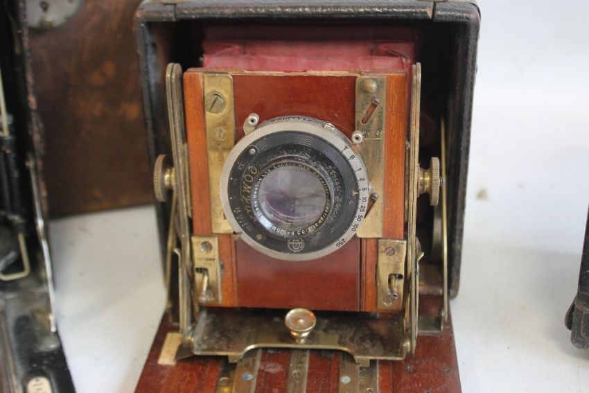 A SANDERSONS PATENT FOLDING CAMERA A/F, together with two other folding cameras