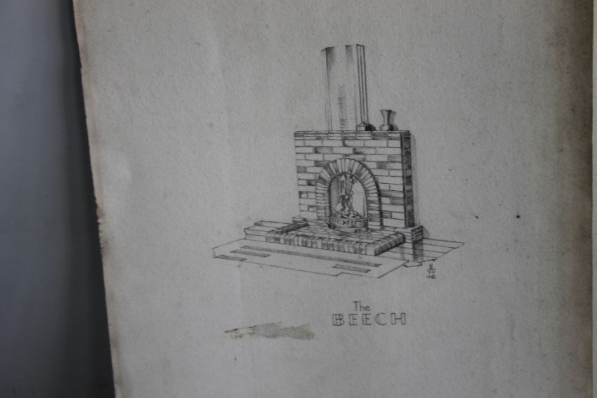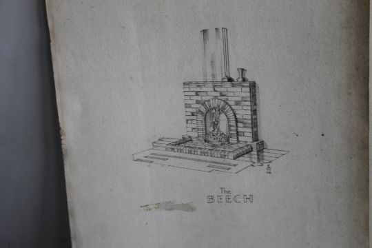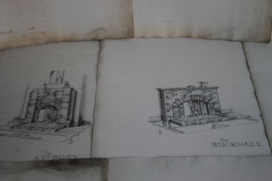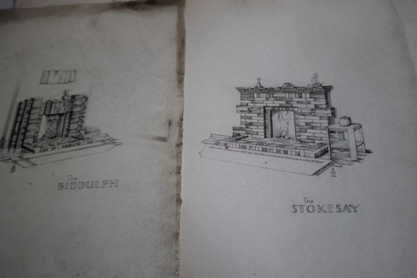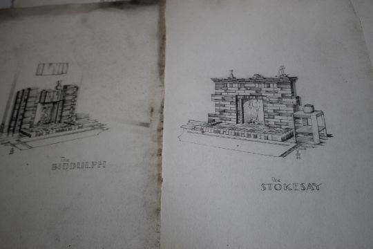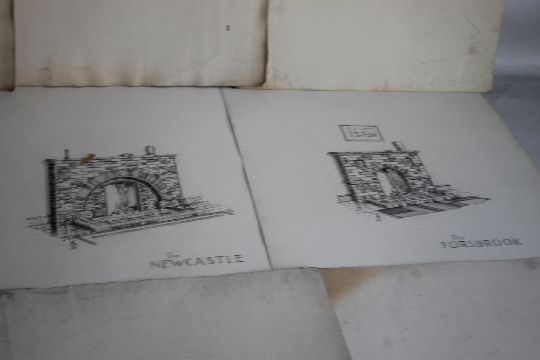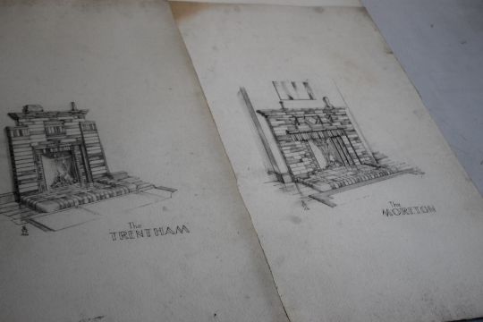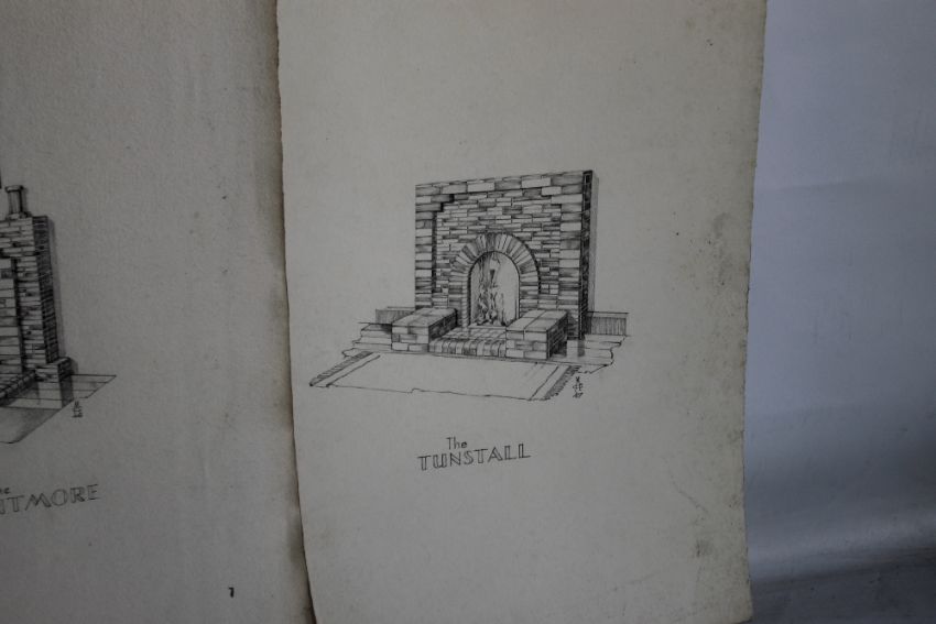THIRTEEN PENCIL DRAWINGS OF FIREPLACE DESIGNS, all with Staffordshire names such as The Wolstanton, The Trentham, The Stokesay, The Biddulph etc., all have the monograph MC and 46 or 47 (presumably the year), paper size 54 x 36.5 cm (13)