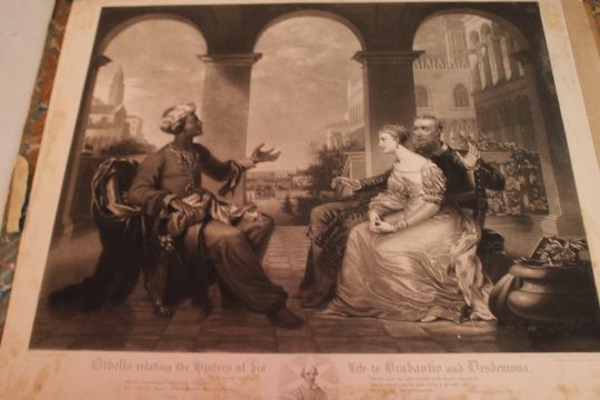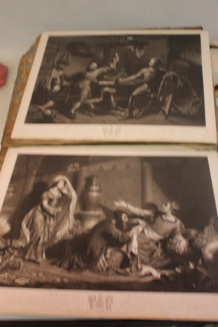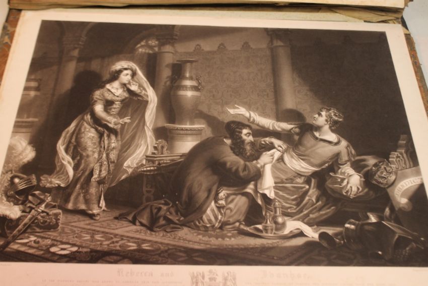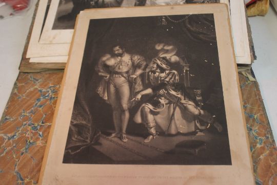 19TH CENTURY ENGRAVINGS AFTER HENRY FRADELLE, to include "The Black Knight and the Clerk of Copmanburst revelling" engraved by W Say, "Rebecca and Ivanhoe" engraved by Thomas Lupton, "Othello relating the History of his life to Brabantio and Desdemona" engraved by W. Say and one other engraved by Thomas Lupton, also "Richard the 3rd persuading Buckingham to consent to the murder of the young princes" painted and engraved by W. Nicholas, 56 x 45 cm (5)