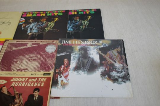 A COLLECTION OF JIMI HENDRIX LPS TO INCLUDE - Smash Hits x 2, Cornerstone, Crash Landing, The Essential Jimi Hendrix (Double), Jimi Hendrix / Little Richard Friends From The Beginning, together with Johnny & The Hurricanes Stormsville (mono - London) (7)