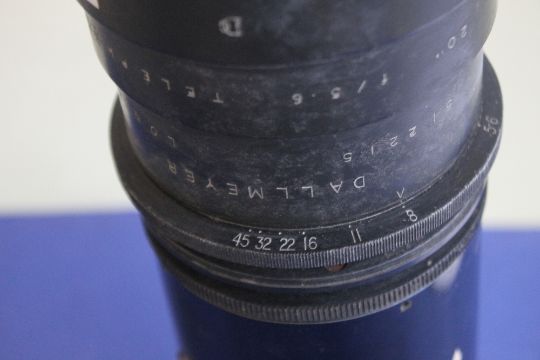 A DALLMEYER - LONDON f/5.6 TELEPHOTO LENS, with mounted 20" lens sight