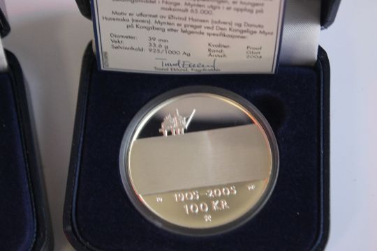 NORWAY - THREE CASED SILVER PROOF 2005 100 KRONER with certificate of authenticity