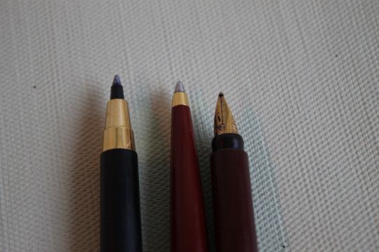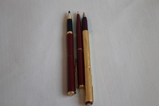 A PARKER 88 MAROON & GOLD FOUNTAIN PEN, gold plated (1988) together with two Parker Imperial Line (YL) ballpoint pens (3)