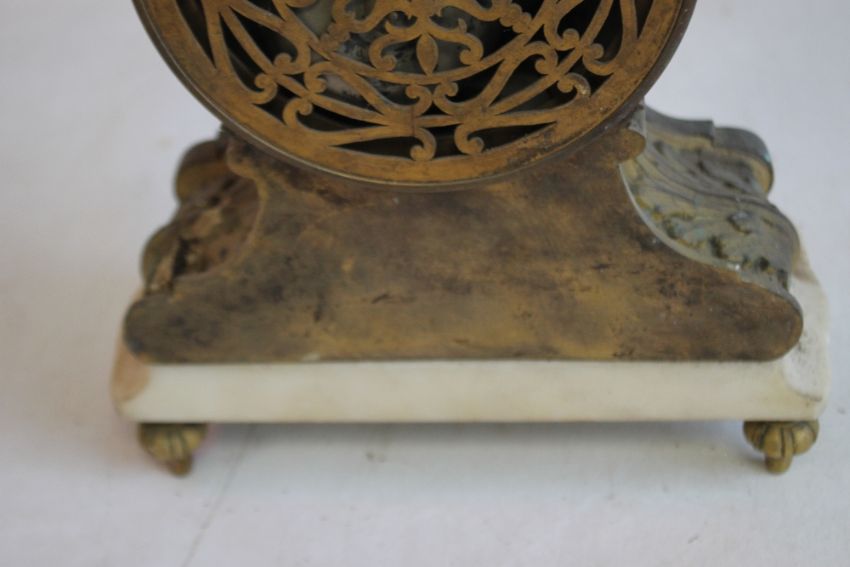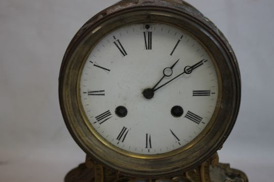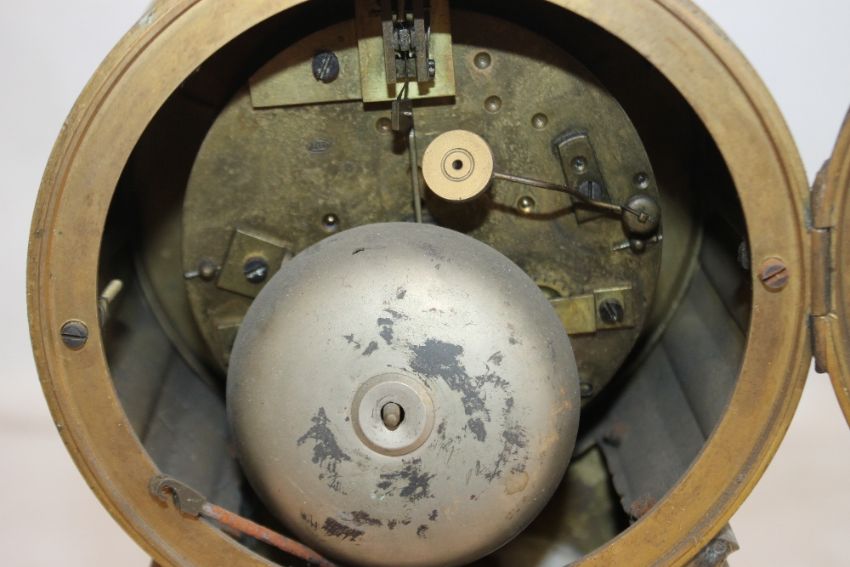 A 19TH CENTURY FRENCH GILT DRUM HEAD MANTEL CLOCK with movement stamped for Jean-Baptiste Deletrez, H 28 cm A/F