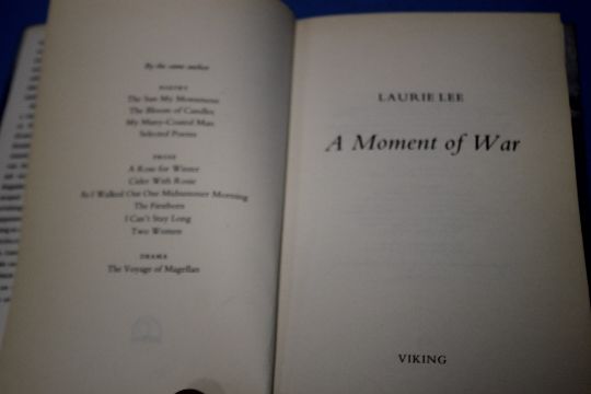 LAURIE LEE - 'A MOMENT OF WAR', published by Viking, 1991, hardback first edition with dust jacket
