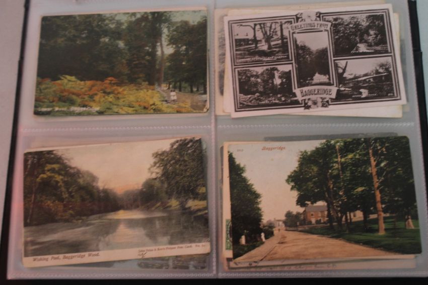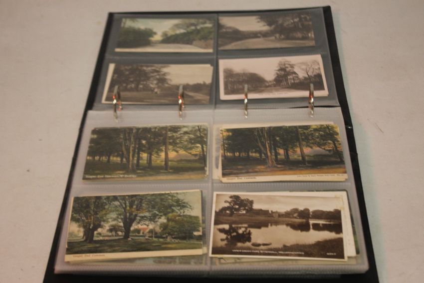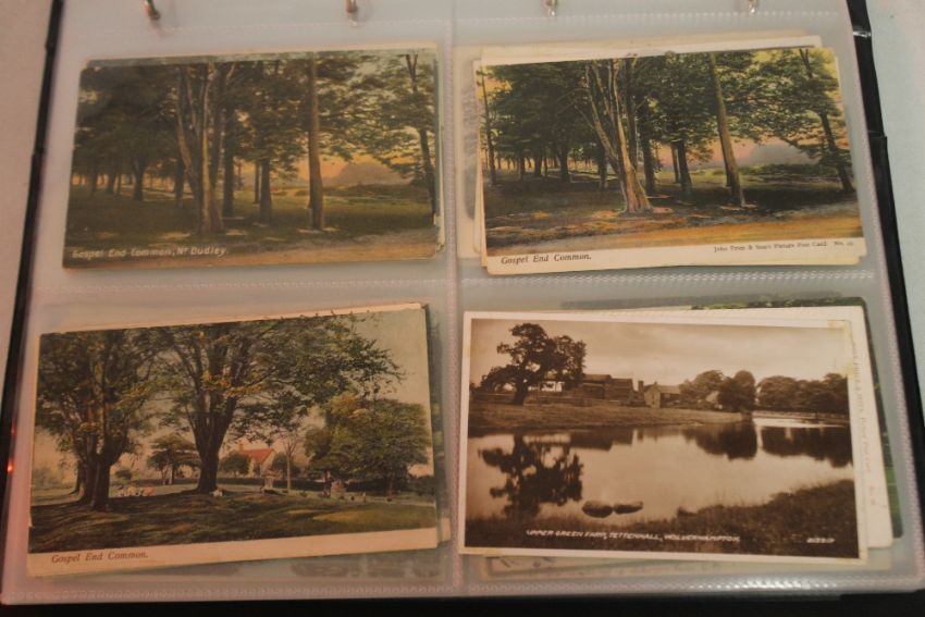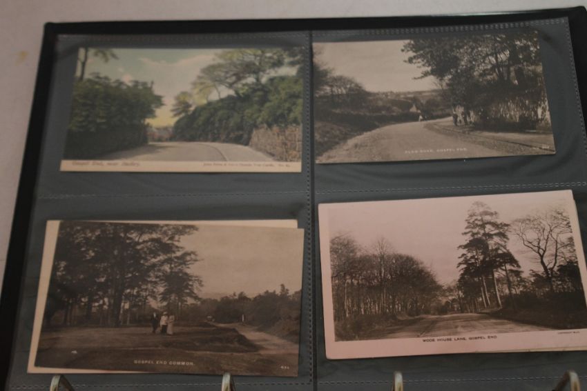 AN ALBUM OF LOCAL INTEREST POSTCARDS TO INCLUDE SELECTIONS OF GOSPEL END AND THE CROOKED HOUSE HIMLEY, including examples giving it as Siden House and the Glynne Arms