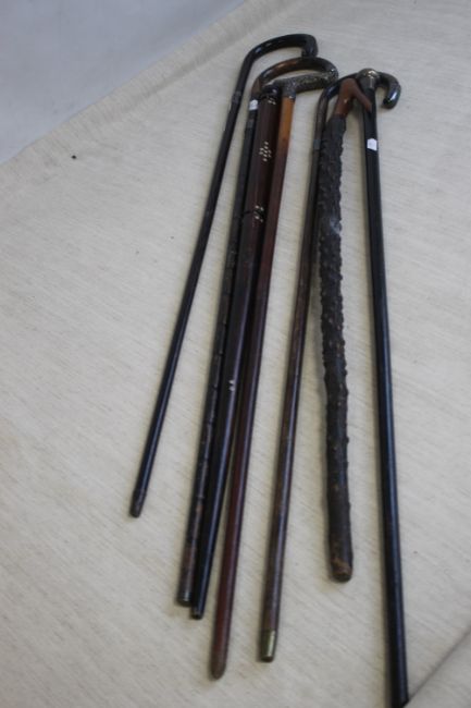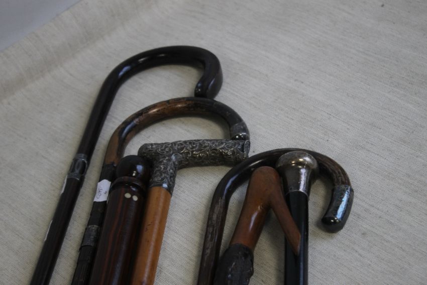 A COLLECTION OF WALKING STICKS, to include silver mounted examples