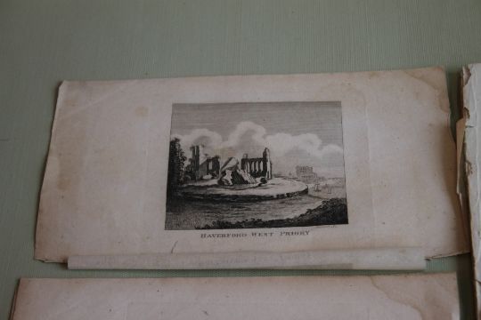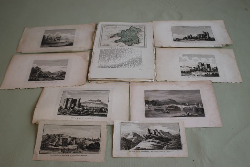 WELSH INTEREST - A COLLECTION OF BOOK REMOVED 18TH AND 19TH CENTURY MAPS AND ENGRAVINGS, engravings include "Vale Crucis Abbey", "Neath Castle", "Llanblythian Caste", "Holt Castle" etc and maps of Cardiganshire, Denbighshire, Merionethshire and Pembrokeshire