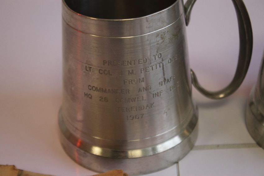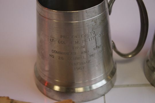 MILITARY INTEREST- a quantity of badges, tankards, presented to Colonel J.M Petit