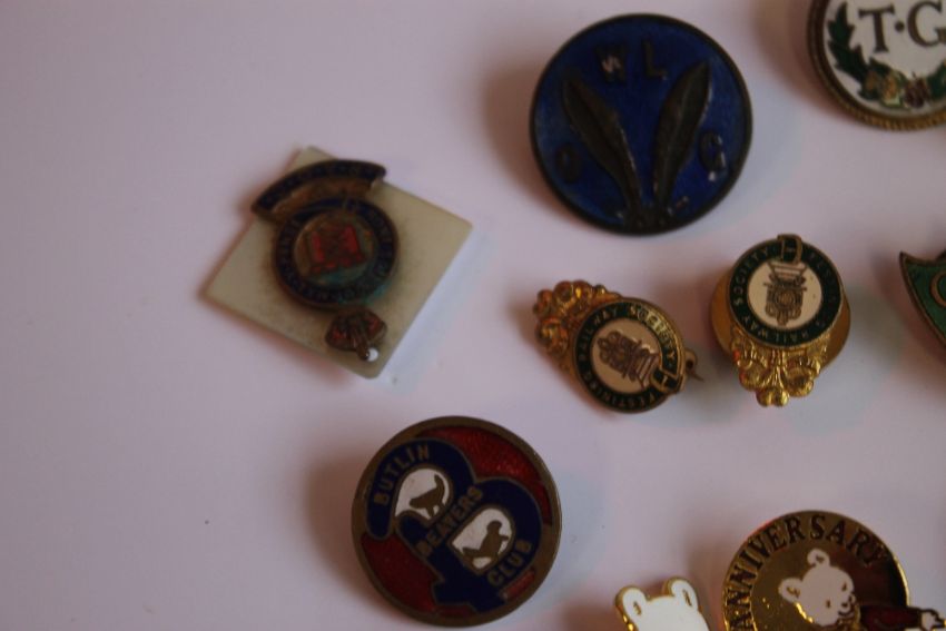 A GROUP OF ENAMEL AND OTHER BADGES, to include Robertsons jam, Butlins trade union, Rupert Bear etc