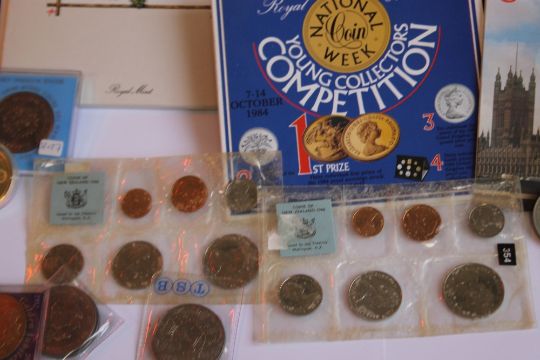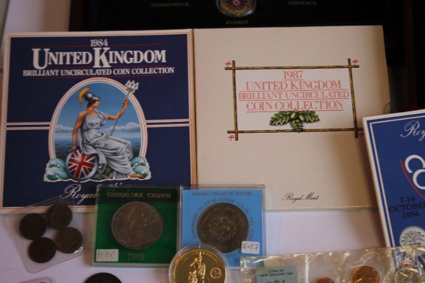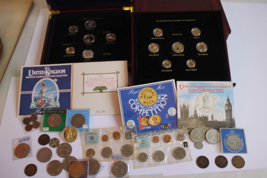 ROYAL MINT UNCIRCULATED SETS, COMMEMORATIVE'S, COINS ETC, coloured coins in presentation boxes etc