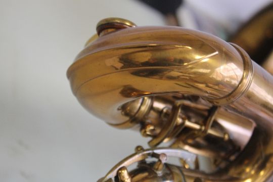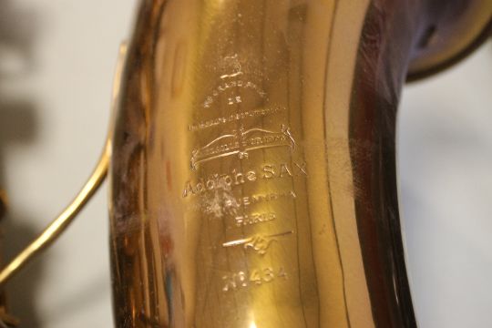 AN ADOLPHE SAXOPHONE "1ER Grand Prix De La Facture Instrumentale Medaille D'Or 1900, Adolphe SAX, 84 Rue Myrha, Paris, No. 434", # 9832X, with mouthpiece etc in fitted case