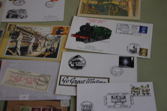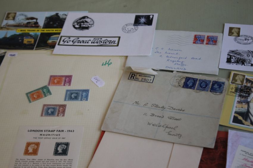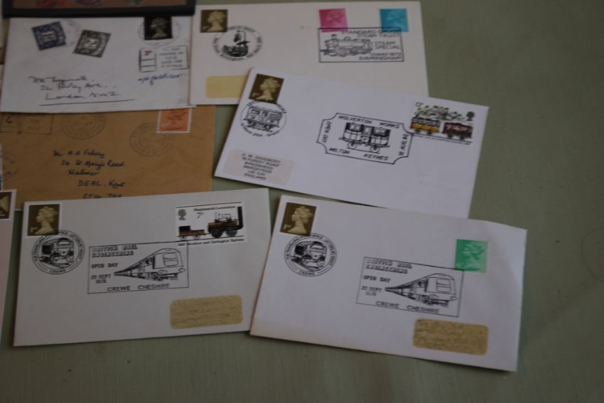 A COLLECTION OF STAMPS AND COINS, to include a selection of "postage due" covers, railway interest etc.
