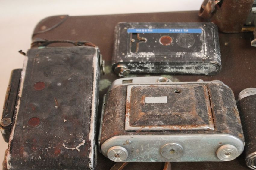 A SMALL CASE OF ASSORTED CAMERAS to include a Kodak 35, Argus, Koroll Film 120, Agfa Isolette etc. (8) A/F