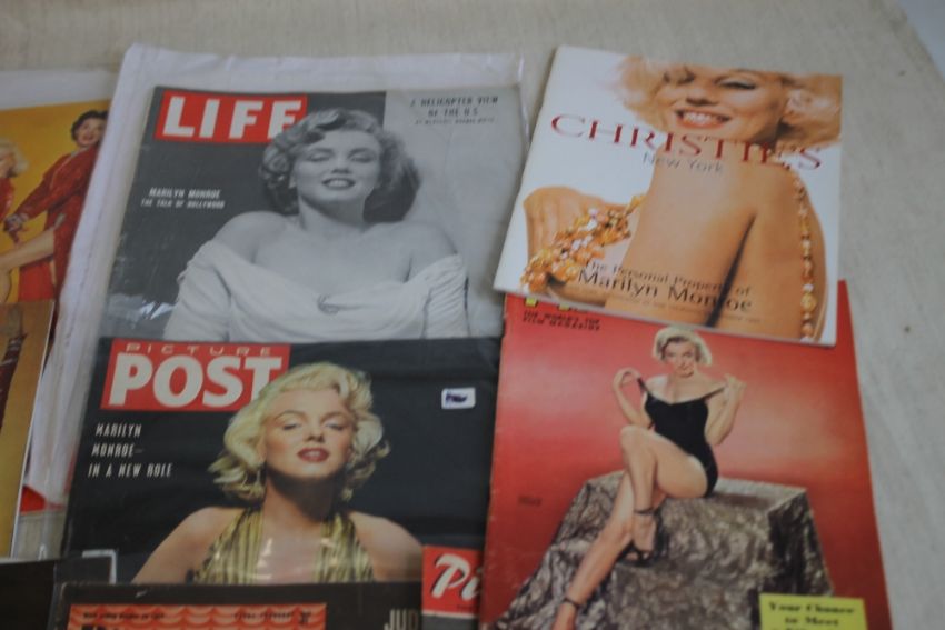 MARILYN MONROE - MAGAZINES ETC. FEATURING MARILYN MONROE to include "Life" International Edition May 1952, June 1953, May 1959, "Picture Post" August 1953, April 1954, July 1956, "Picturegoer" August 1952, January 1954, October 1954, November 1956, "Picture Show" July 1957, "Photoplay" July 1955 together with Christie's New York Catalogue of the Personal Property of Marilyn Monroe October 1999 (13)