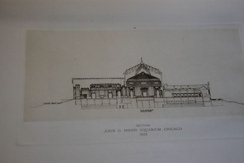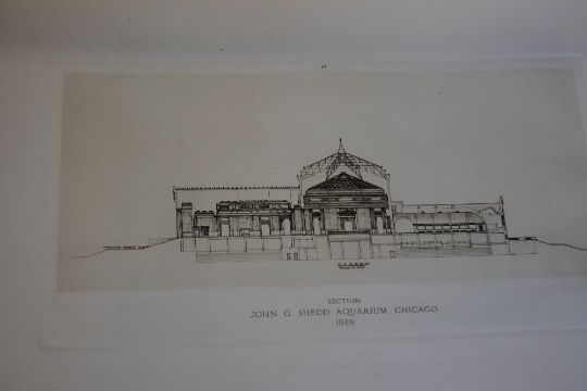 THE ARCHITECTURAL WORK OF GRAHAM ANDERSON, PROBST & WHITE, CHICAGO AND PREDECESSORS: D. H. BURNHAM & CO AND GRAHAM BURNHAM & CO.', one Vol. only no title pages, publishing details or binder's label, contains 186 photogravure plates of the firm's works, first plate is "Field Museum of Natural History, Chicago 1911-1919" and the last "Pittsfield Building, Chicago 1927"
