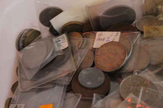A TUB OF BRITISH AND WORLD COINS