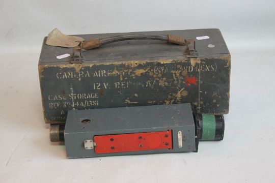 A WWII ERA G45 AIR MINISTRY CAMERA IN FITTED WOODEN CASE A/F/ 12 volt model