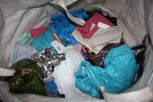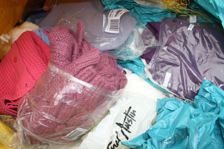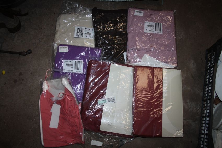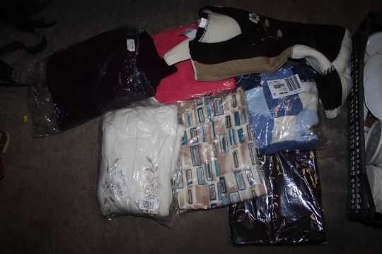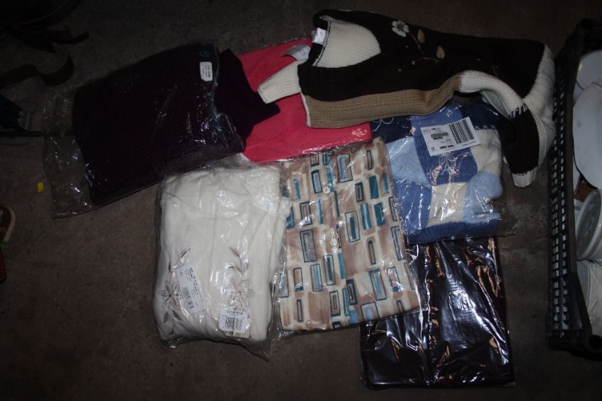 A LARGE BAG OF MOSTLY PACKAGED LINEN ETC. TO INCLUDE LADIES CLOTHING ETC.
