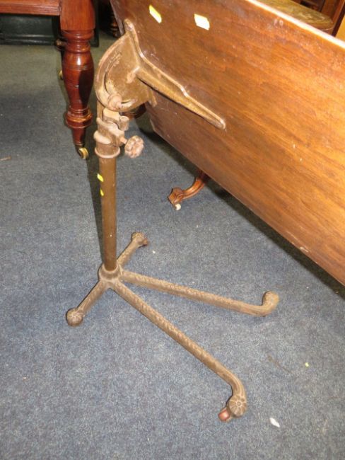 AN ANTIQUE CAST / WOOD ADJUSTABLE BED TABLE
