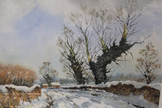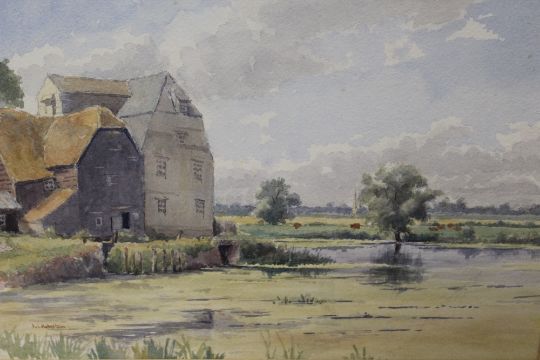 THREE FRAMED AND GLAZED WATERCOLOURS CONSISTING OF 'HEMMINGFORD MILL RIVER OUSE', 'OARE VALLEY' BY STEVEN J KIRBY AND 'TOWARDS LOW DUNSFORTH - NORTH YORKSHIRE' BY ROBERT HENMBROW