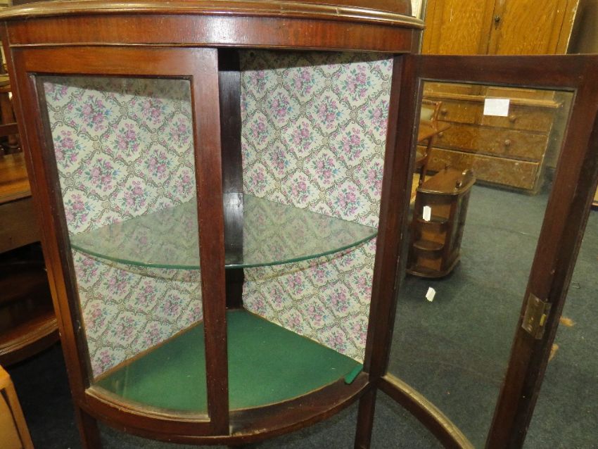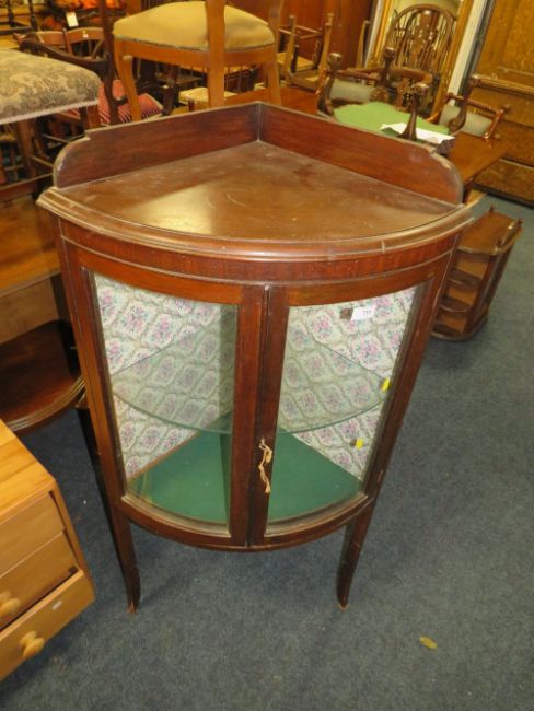 A 1920'S / 30'S CORNER MAHOGANY GLAZED CABINET H-130 CM