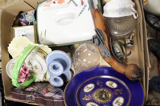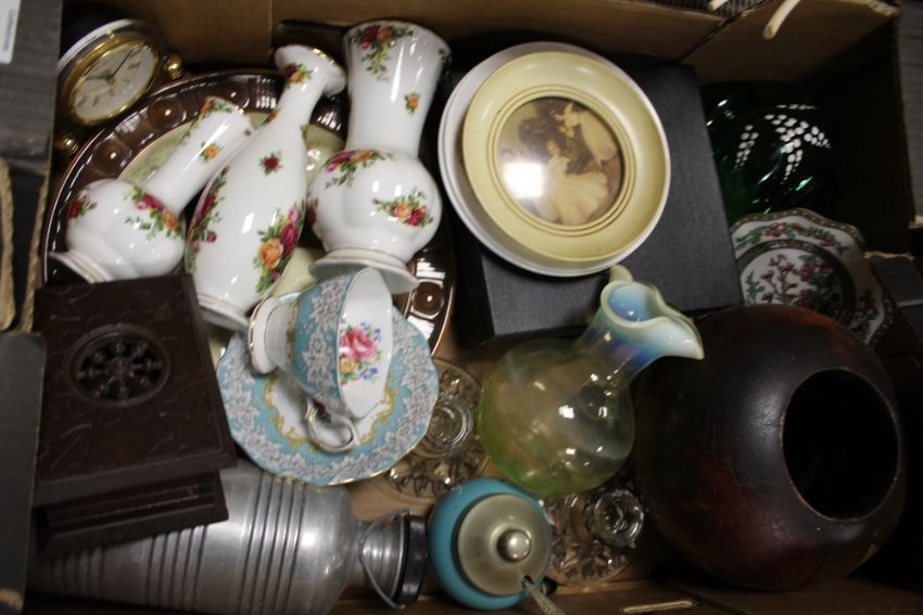 TWO TRAYS OF ASSORTED CERAMICS ETC. TO INCLUDE ROYAL ALBERT, WEDGWOOD AND COALPORT