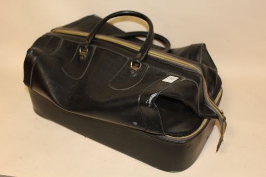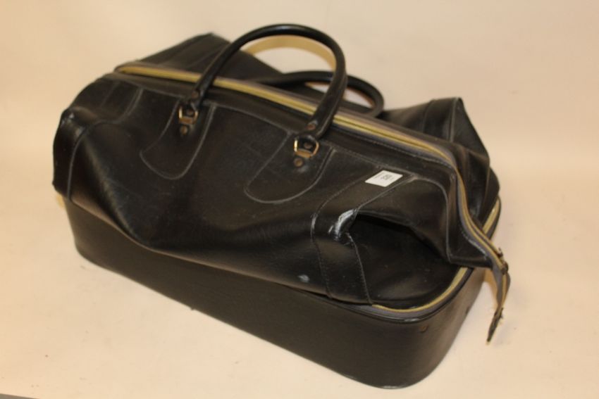 A VINTAGE BLACK LEATHER GLADSTONE BAG