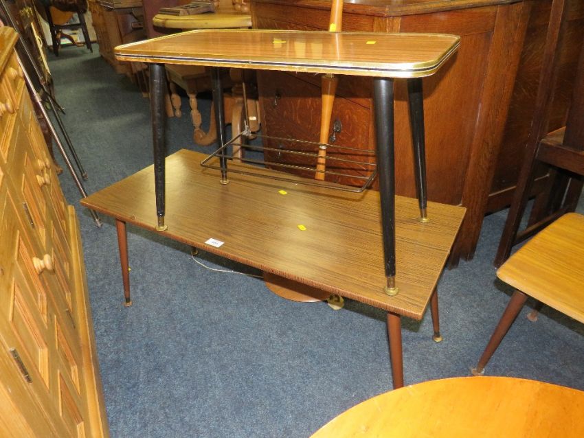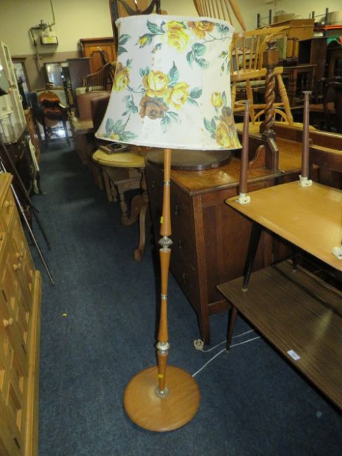 FOUR ASSORTED VINTAGE OCCASIONAL TABLES AND A STANDARD LAMP ETC (7)
