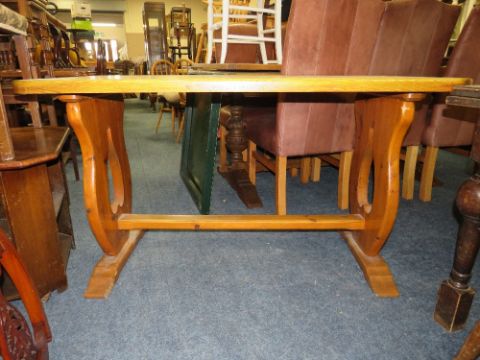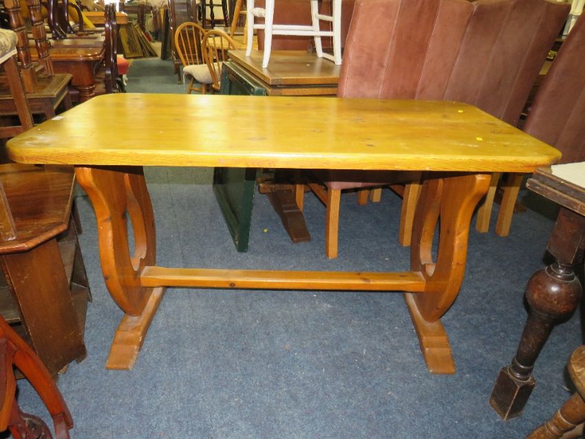 A PINE KITCHEN TRESTLE TABLE H-74 W-136 CM