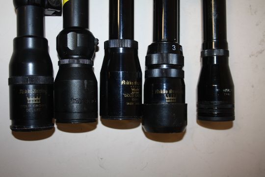 FIVE AIR RIFLE SCOPES TO INCLUDE NIKKO STIRLING AND TASCO EXAMPLES