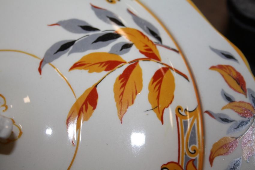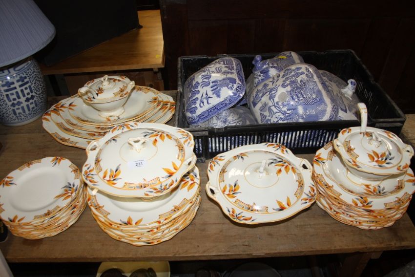 A COLLECTION OF BURLEIGH WARE DINNERWARE TOGETHER WITH A COLLECTION OF BLUE AND WHITE TUREEN LIDS
