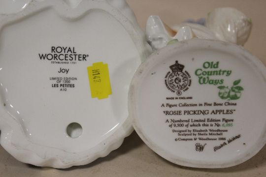 TWO ROYAL WORCESTER LADY FIGURES 'ROSIE PICKING APPLES' AND 'JOY'
