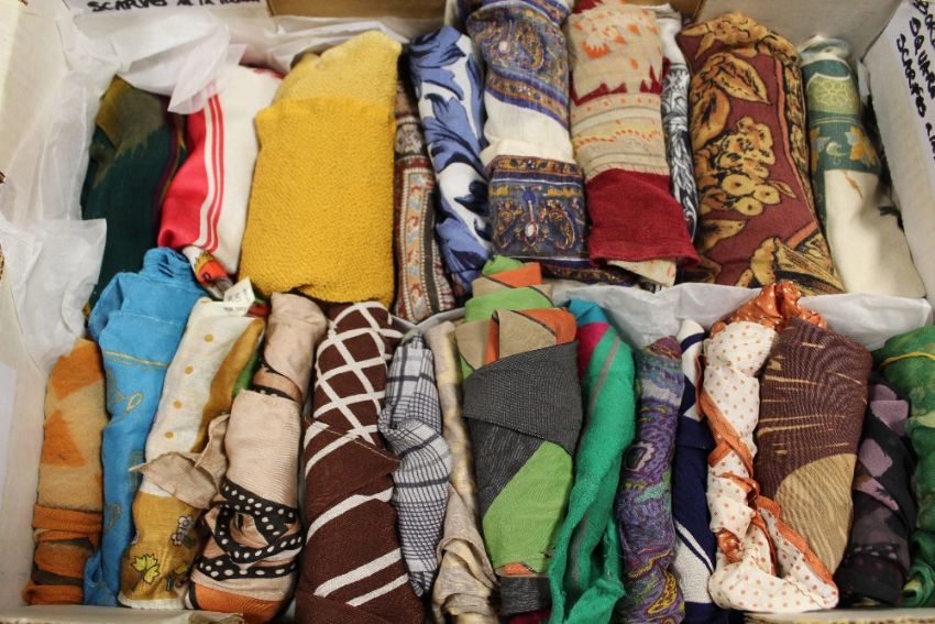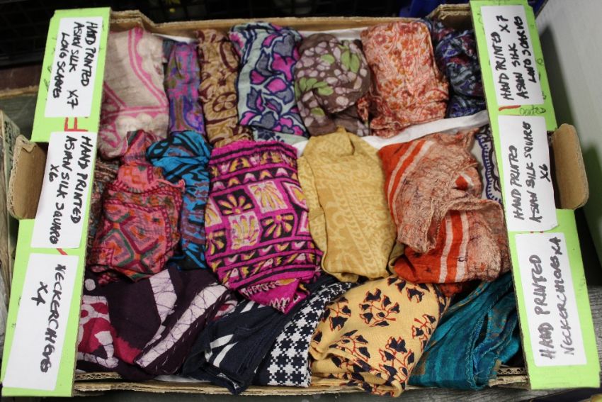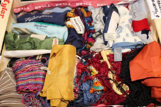 THREE BOXES OF LADIES SILK SCARVES AND HANDKERCHIEFS