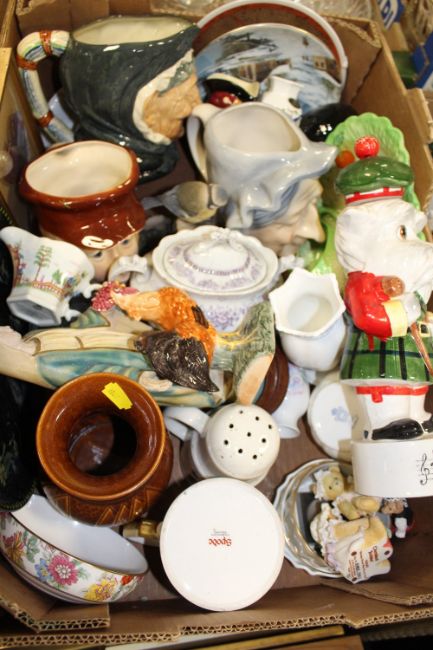 A TRAY OF ASSORTED CHINA AND CERAMICS TO INCLUDE AYNSLEY, ROYAL DOULTON AND ROYAL WORCESTER