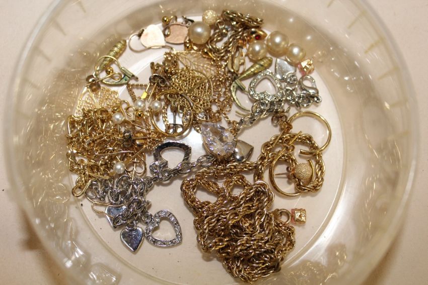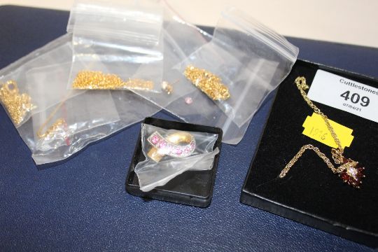 A COLLECTION OF STEEL AND METAL JEWELLERY TO INCLUDE 9 CT GOLD EARRINGS
