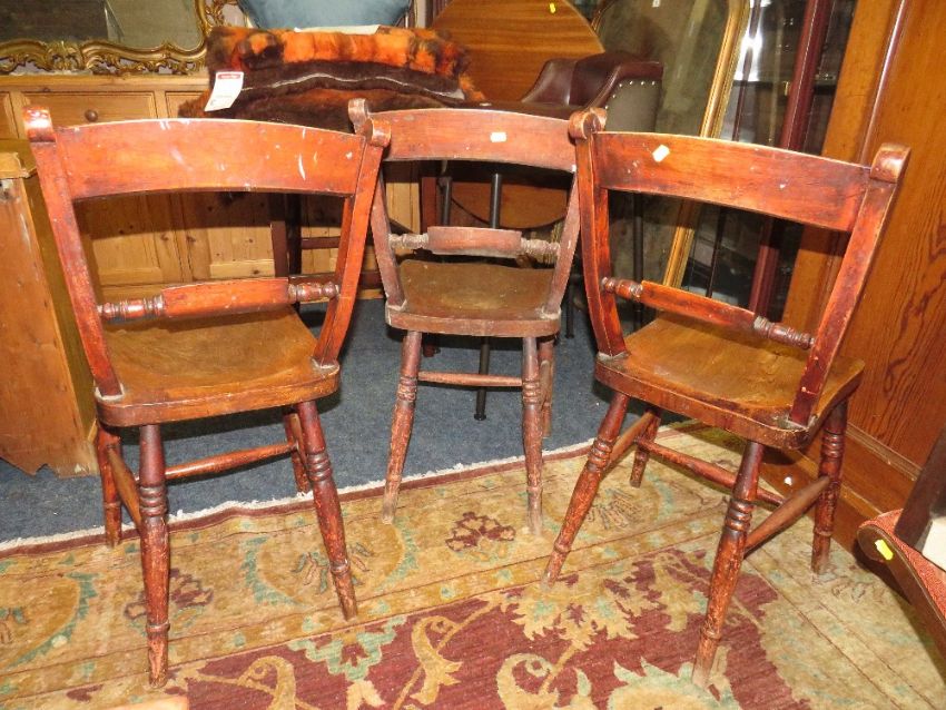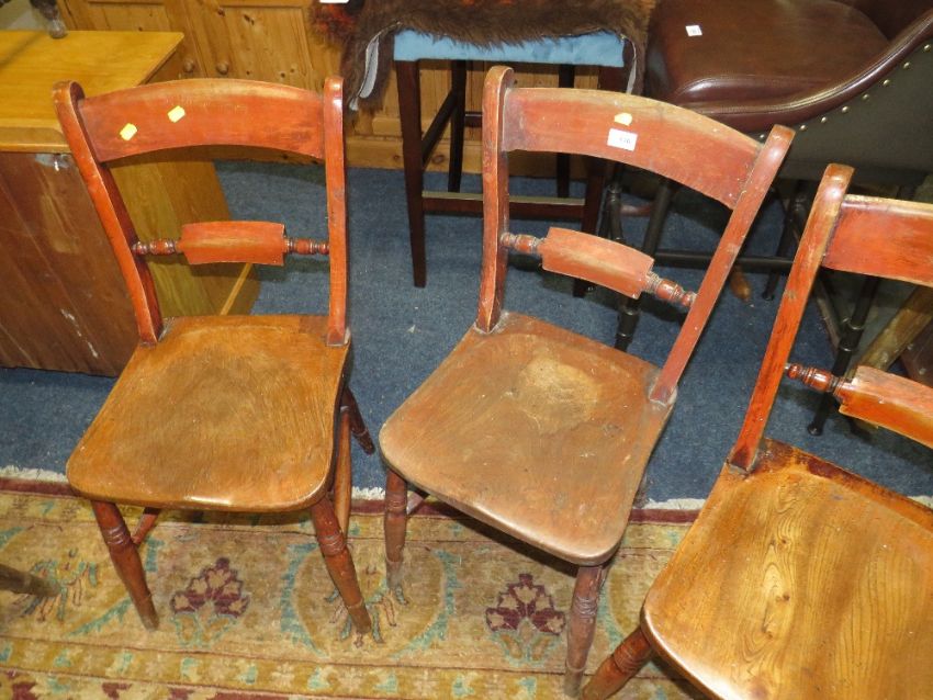 THREE TRADITIONAL ELM KITCHEN CHAIRS