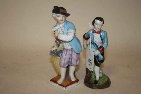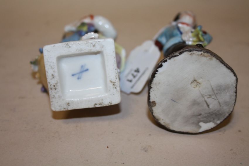 TWO 20TH CENTURY CONTINENTAL CERAMIC FIGURES, one having crossed swords mark to base, tallest H 15.5 cm