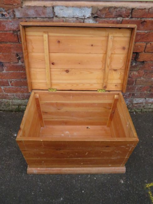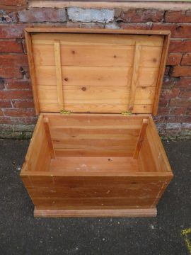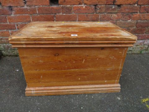 A SMALL VINTAGE PINE TWIN HANDLED TRUNK H-47 W-77 CM