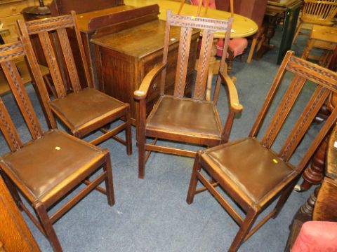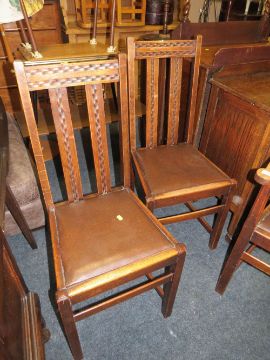 A SET OF FOUR VINTAGE OAK DINING CHAIRS
