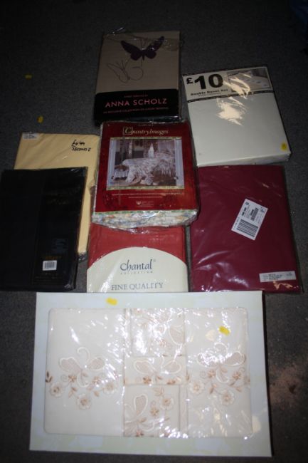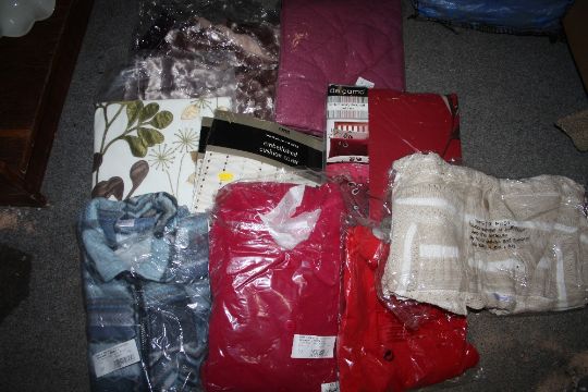 A LARGE QUANTITY OF TEXTILES IN ORIGINAL PACKAGING TO INCLUDE BED LINEN, CLOTHING ETC.